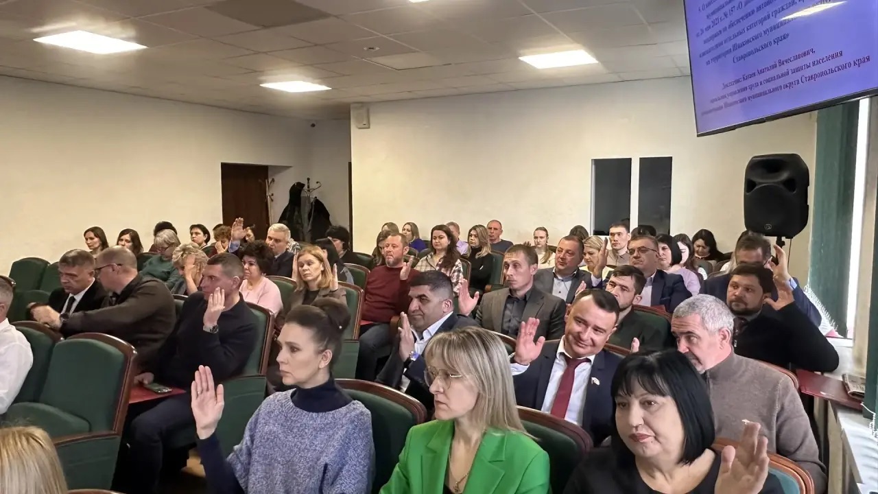 Состоялось восьмое очередное заседание Думы Шпаковского муниципального округа второго созыва под председательством Сергея Печкурова с участием депутатов Думы Ставропольского края Юрия Белого и Сергея Чурсинова, а также главы Шпаковского округа Игоря Серова.